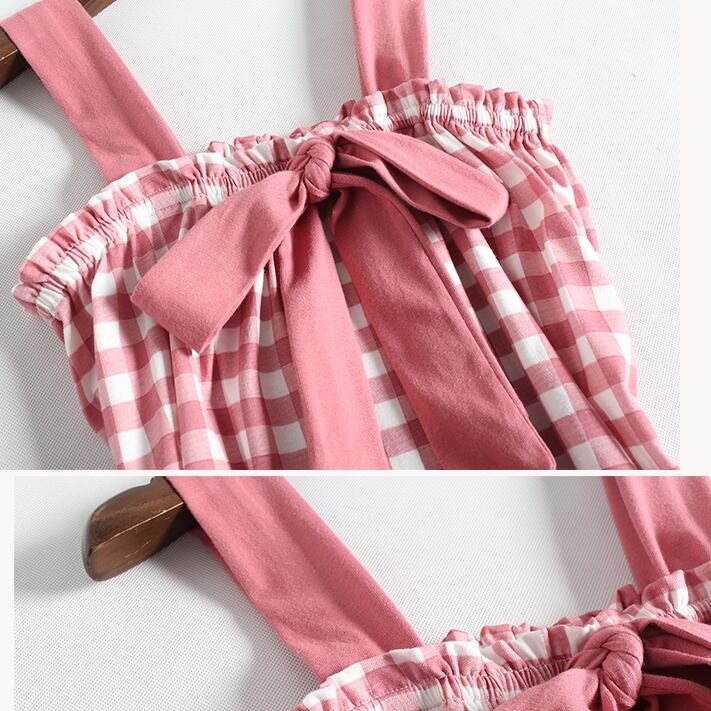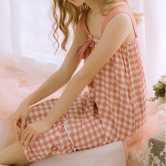 ピンクの格子柄がフェミニンなストラップドレス。女性らしいネグリジェ♪