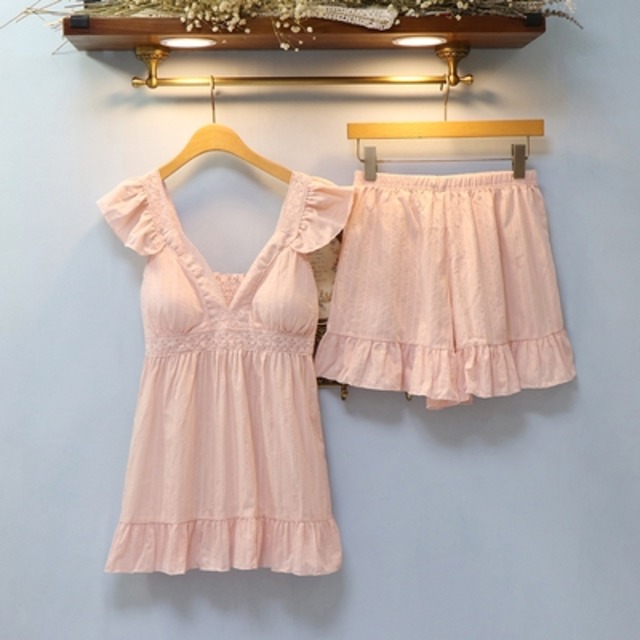 パット付き フリルスリーブプルオーバー&ショートパンツ set up*L-297