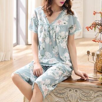 Vネックフラワープリントプルオーバー&ハーフパンツ setup*L-333