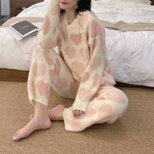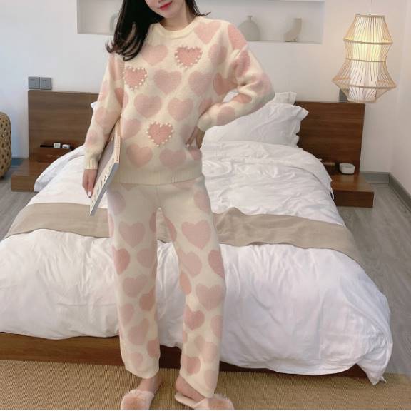 megmy1130様着用 Design Heart ロング丈ニット ルームウェア set up*L-411