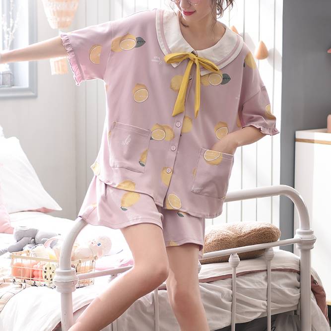 セーラーカラーとレモンプリントが女の子らしいセットアップ。