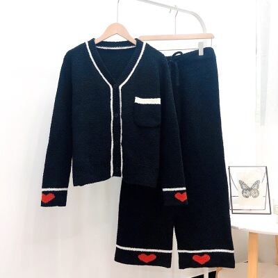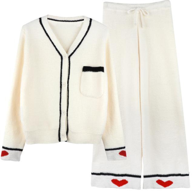Vネック ロング丈 ポイントハート もこもこ セットアップ*L-413