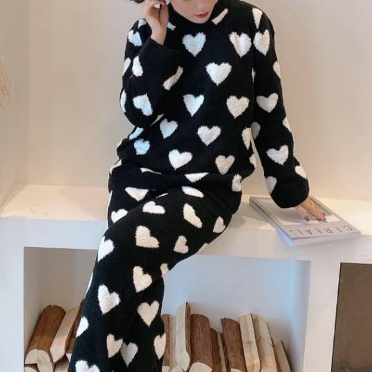 もこもこ ハートデザイン ロング丈セットアップ*L-18