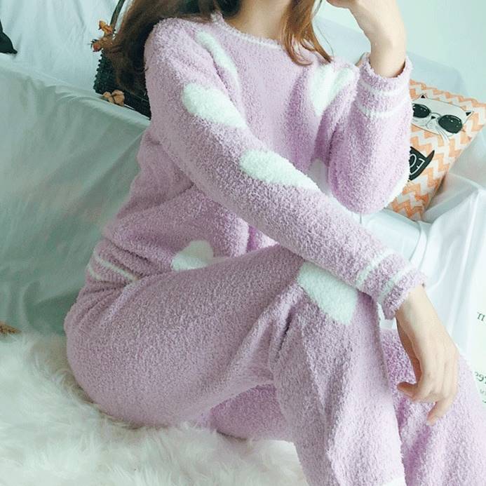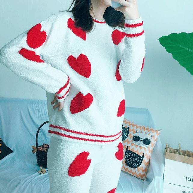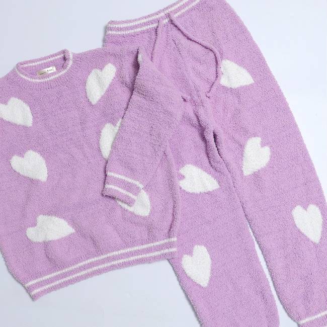 ランダムなハートとラインデザインが可愛いもこもこセットアップ☆⋆。*