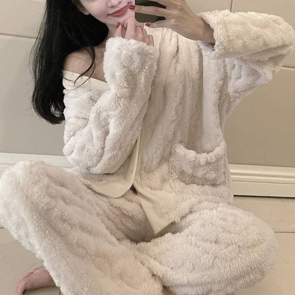 もこもこのフランネル素材の柔らかな触り心地が気持ちいロング丈セットアップ☆⋆。*