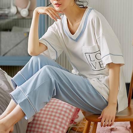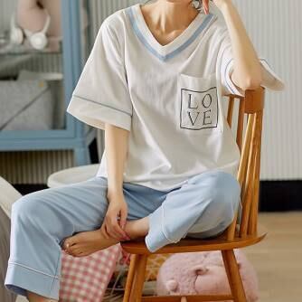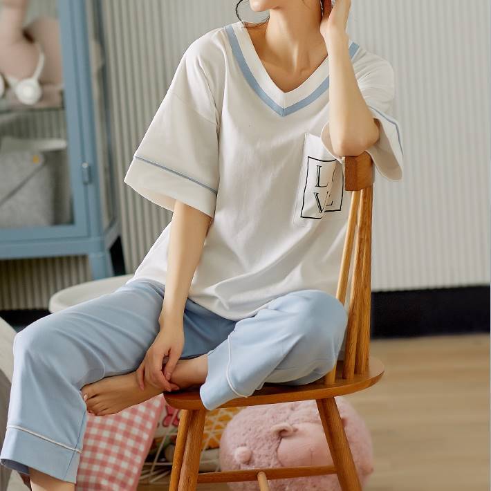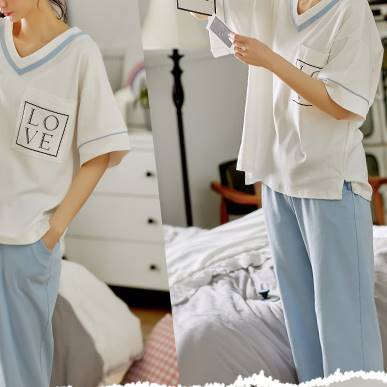 お家のみんなの心をはずませるLOVEメッセージがキュンとする、心地よいコットンVネックプルオーバールームウェアセットです☆⋆。*
