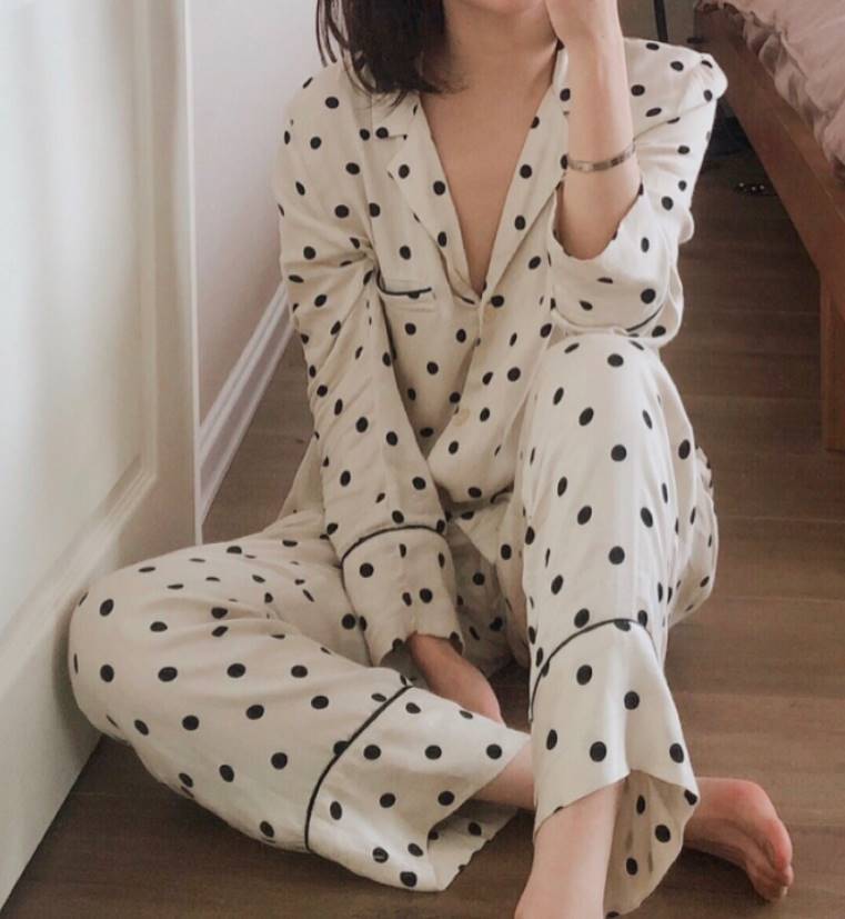 Simpleながらも可愛さがあふれているオープンカラードットルームウェアセットアップ☆⋆。*