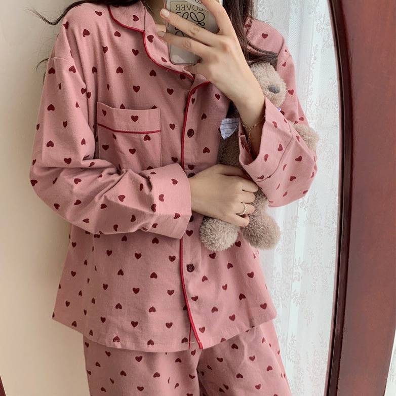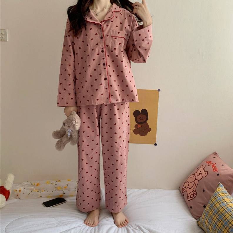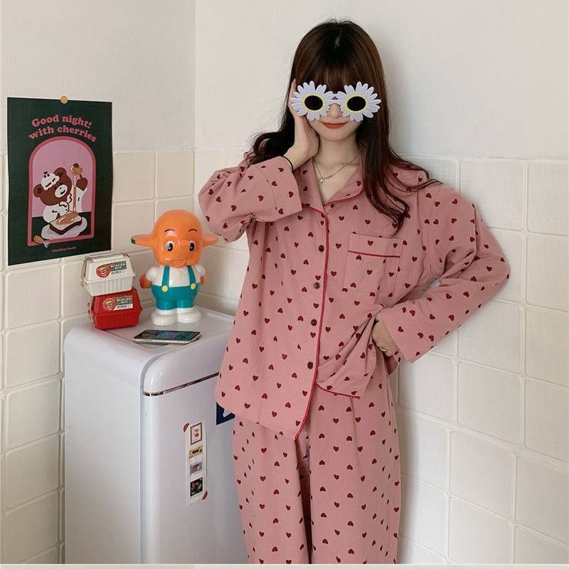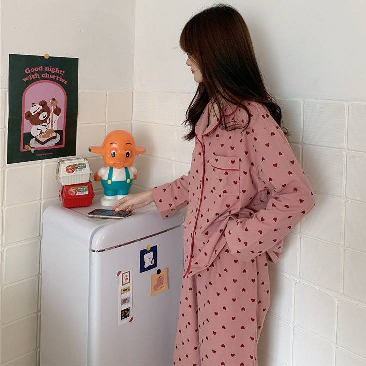 miniハート ロング丈シャツ&パンツ ルームウェアセット*L-158