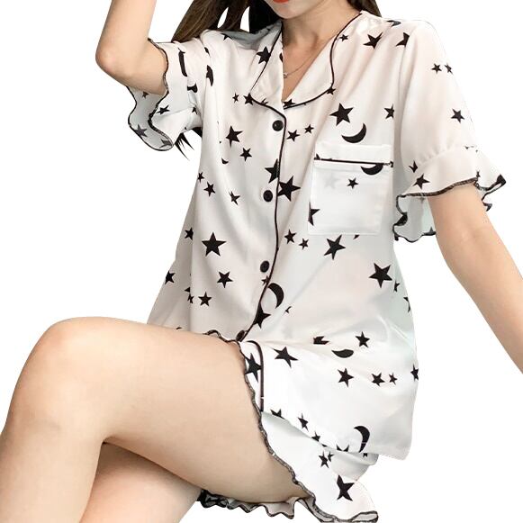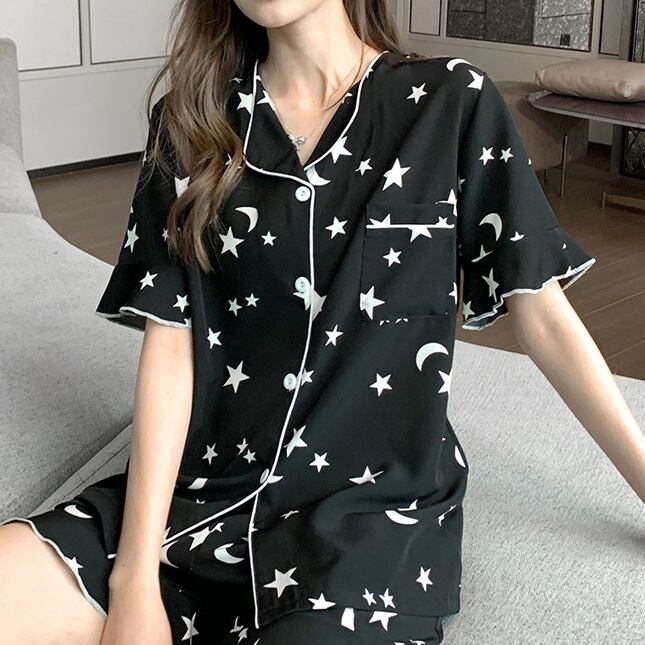 スタープリントがPOPでレディライクなショート丈ルームウェアセットアップ☆⋆。*