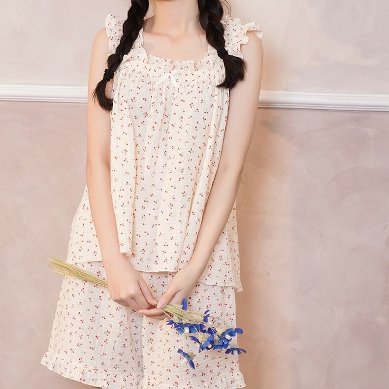 miniチェーリーがちりばめられたコットンルームウェアセットアップ☆⋆。*