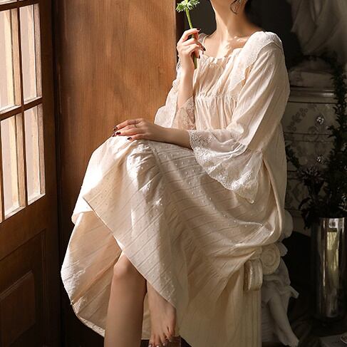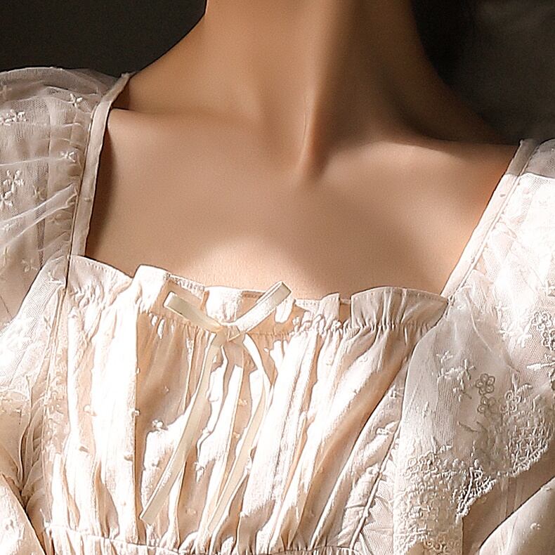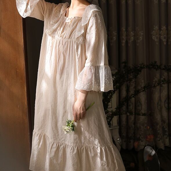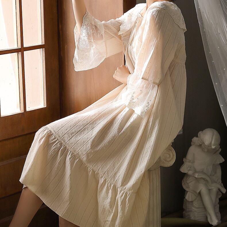 袖口のレースフリルが繊細で女性らしさを存分に味わえるコットンドレス☆