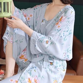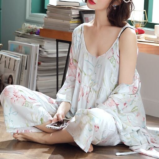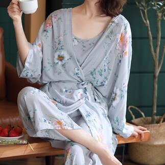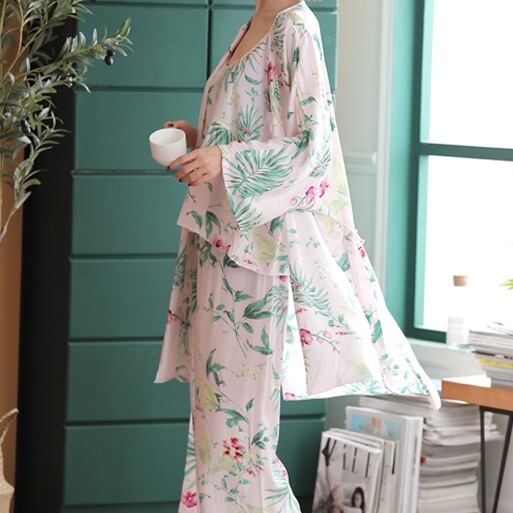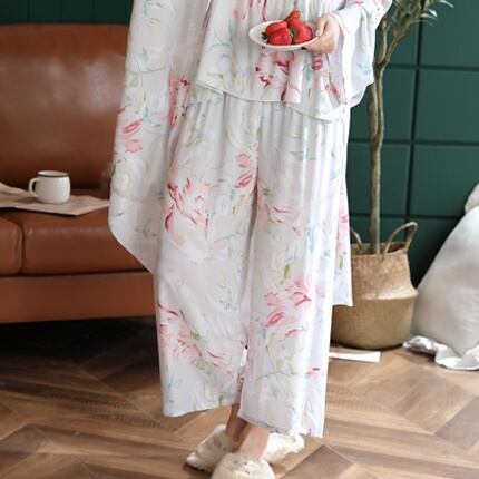 大人かわいいフラワー柄のキャミソールとロングパンツ、ガウンの3点セット☆。*