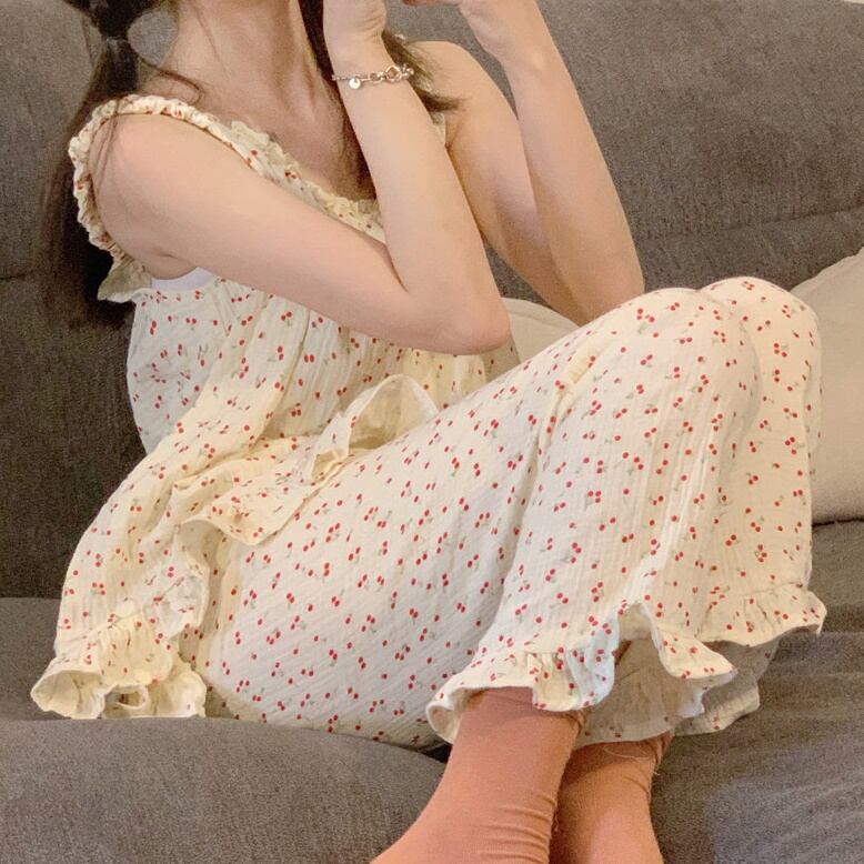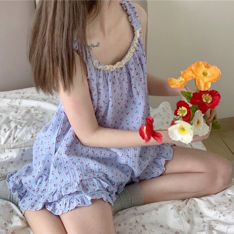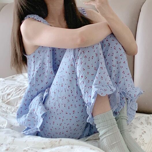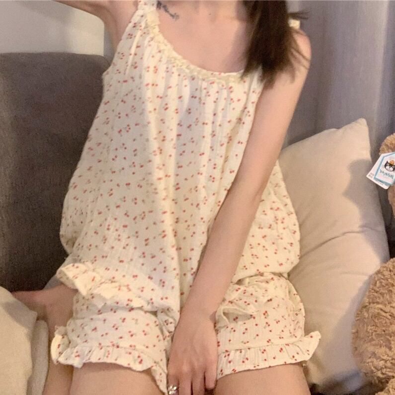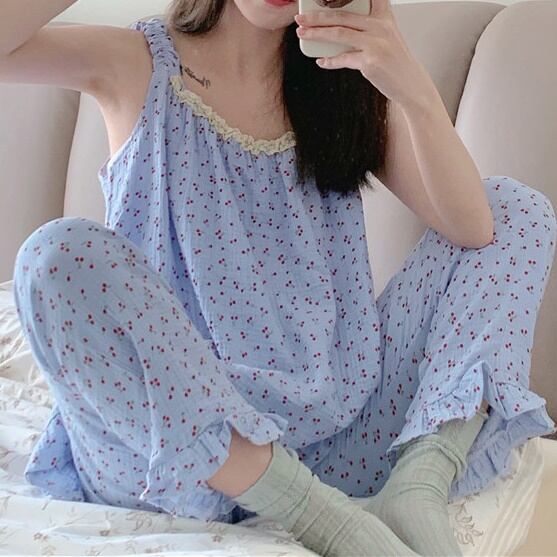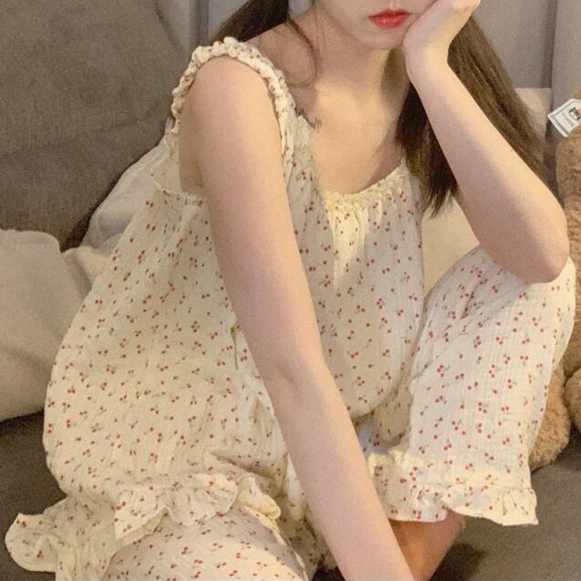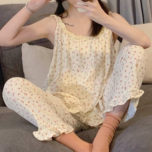 フェミニンなチェリー柄がかわいいキャミソールとパンツのセットアップ☆。*☆⋆。*