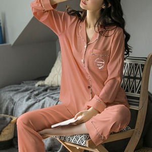 アイスシルク チェックパイピング ロング丈 ルームウェアセットアップ*L-711