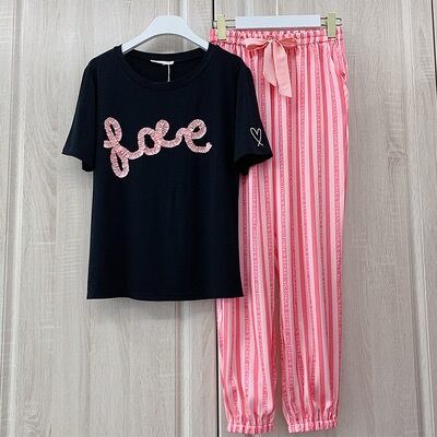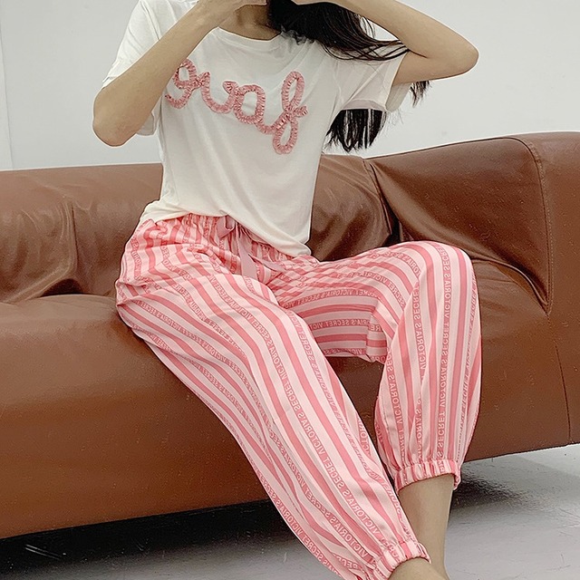 お家時間の気分を上げてくれるLOVEプルオーバーとストライプパンツのセットアップ☆。*