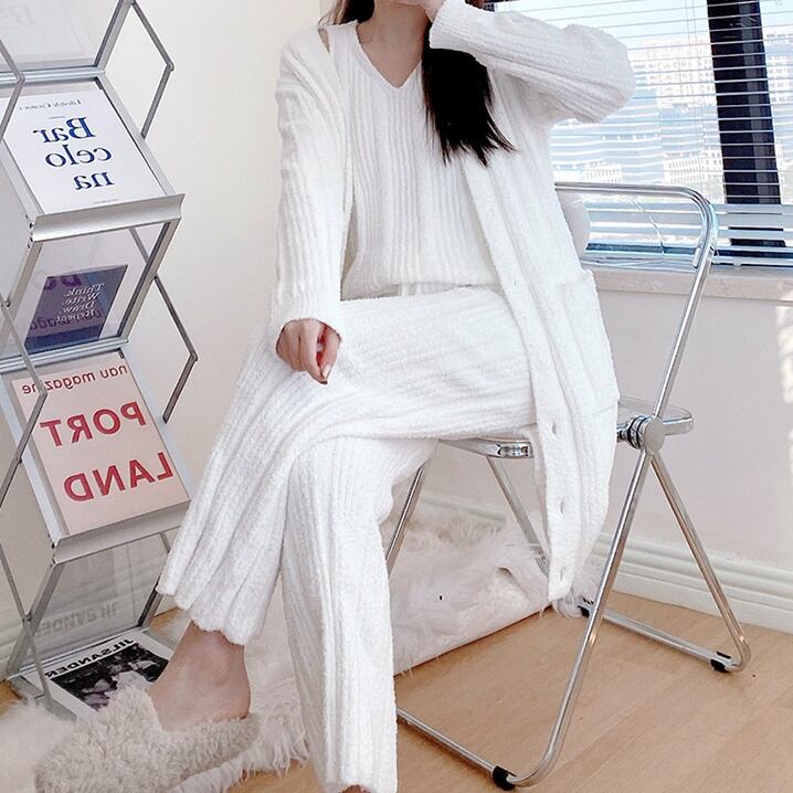 ふんわり優しい肌触りのもこもこ素材のキャミソール&パンツ&ガウンの3 ルームウェア 点セット ☆。*